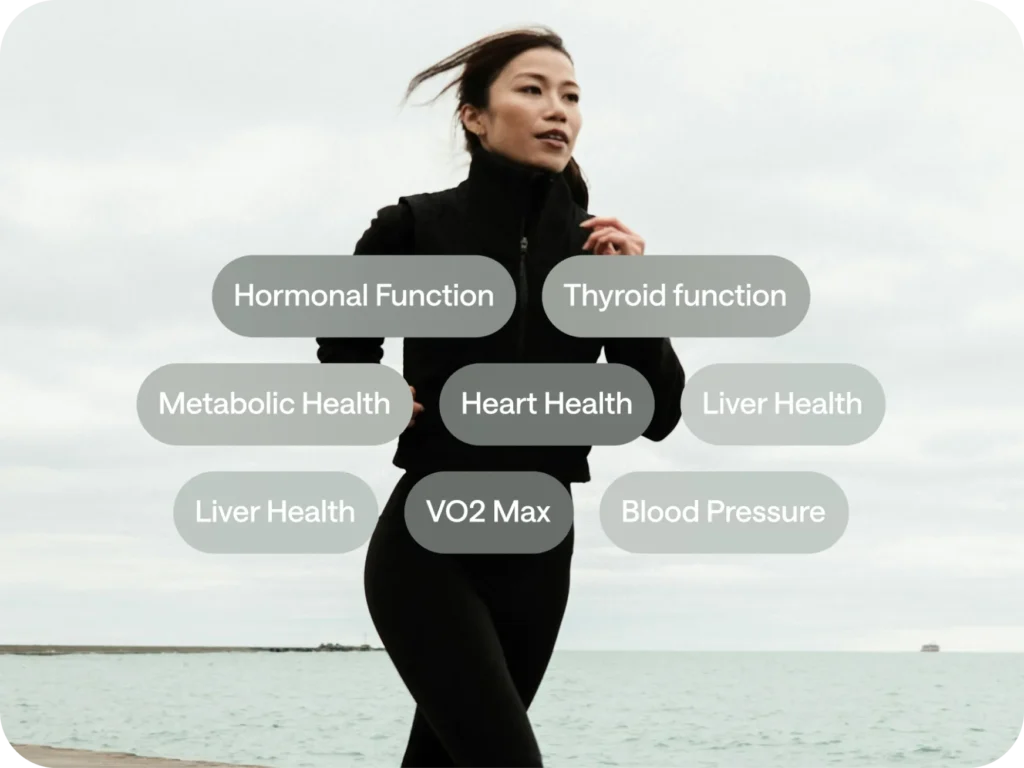 We offer the most comprehensive range of head-to-toe diagnostics in Australia—covering heart health, metabolic function, autoimmune conditions, kidney and liver health, hormones, bone and muscle health, aerobic capacity, cancer and more. The specific tests you receive will vary depending on the plan you and your doctor create based off your health risk baseline. View the complete list of biomarkers we have available to test here.